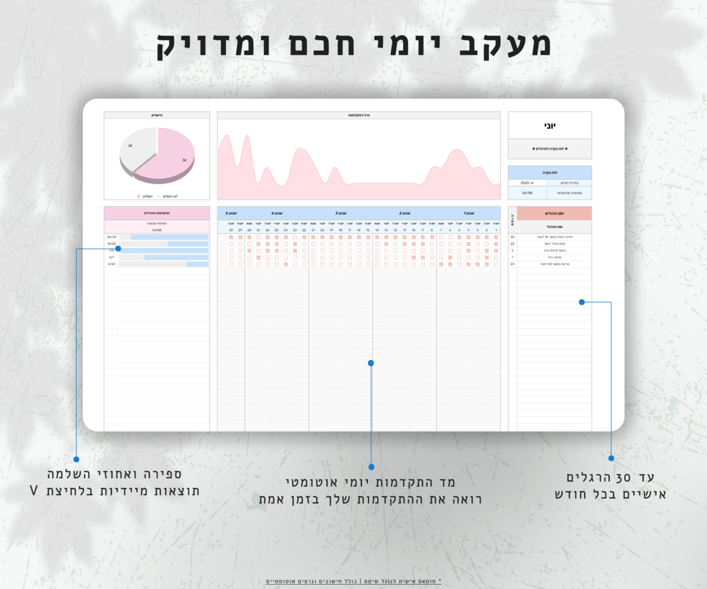 - מעקב עד 30 הרגלים חודשיים (יומיים/שבועיים)